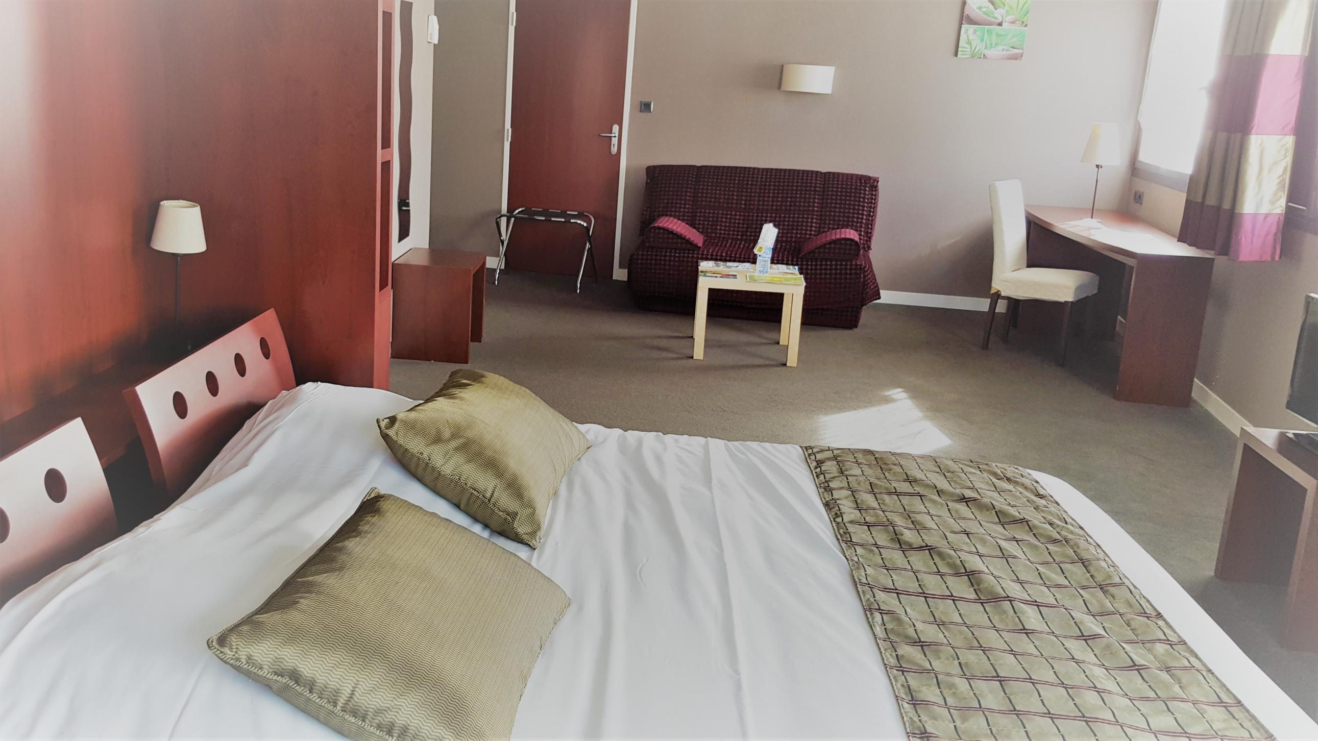 RéserverChambre de 20m2 équipée d'un grand lit 180x200 et d'un canapé-lit double, Douche ou baignoire WC, Téléviseur Ecran Plat, Canal +, Wifi Gratuit, Chambre non fumeur