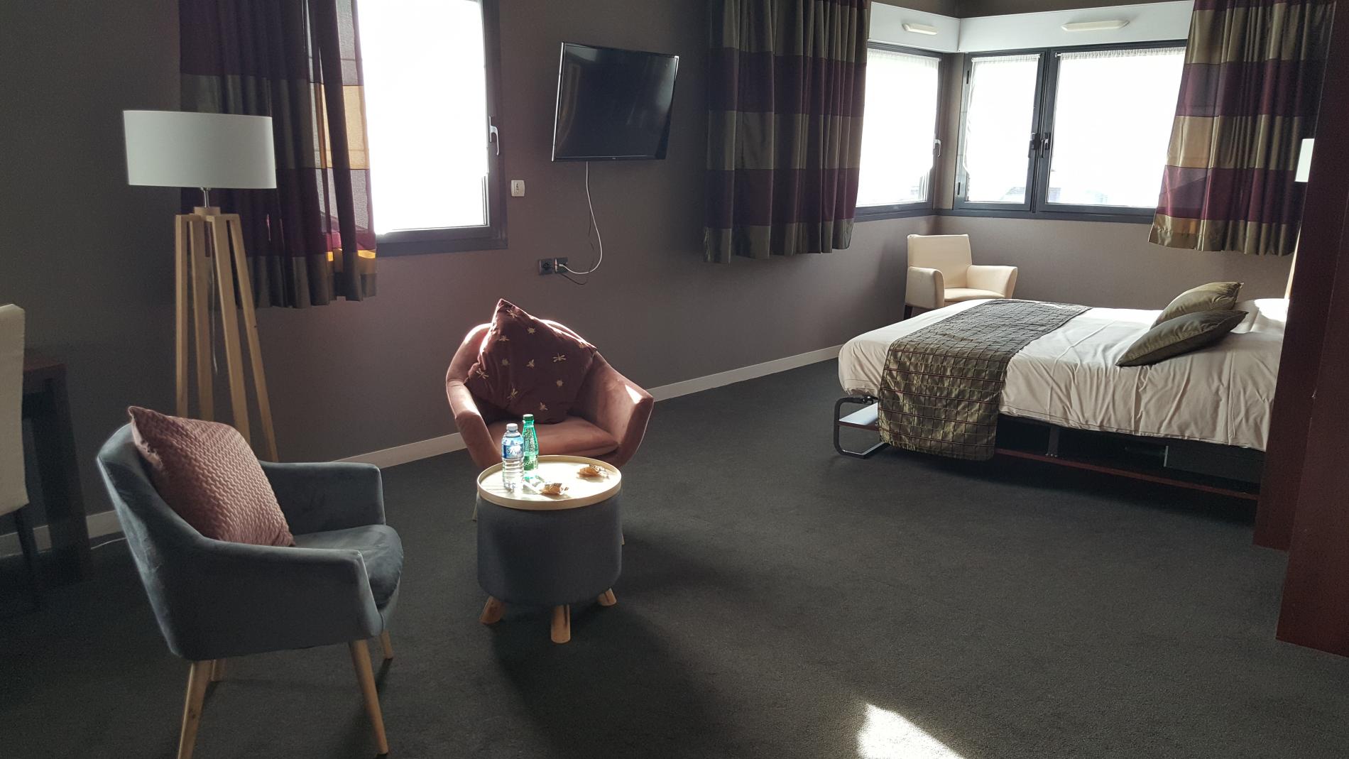 RéserverDes chambres suite avec un lit de 160 cm et un espace salon avec canapé convertible transformable en lit deux personnes; pour un séjour romantique ou un séjour en famille.